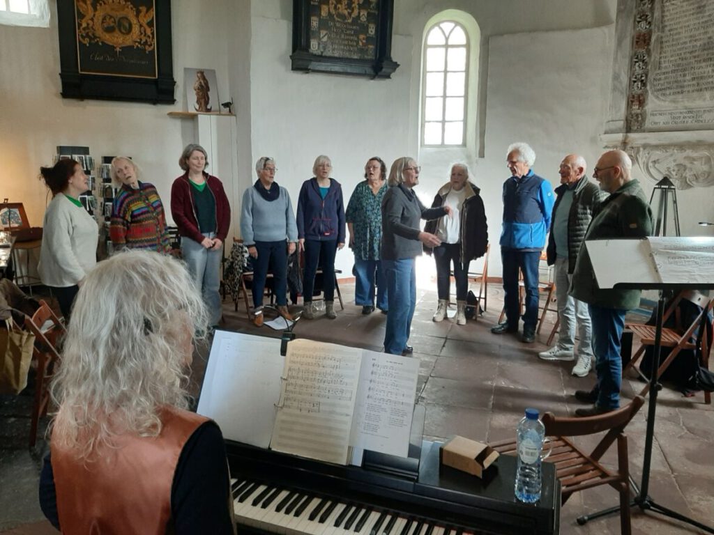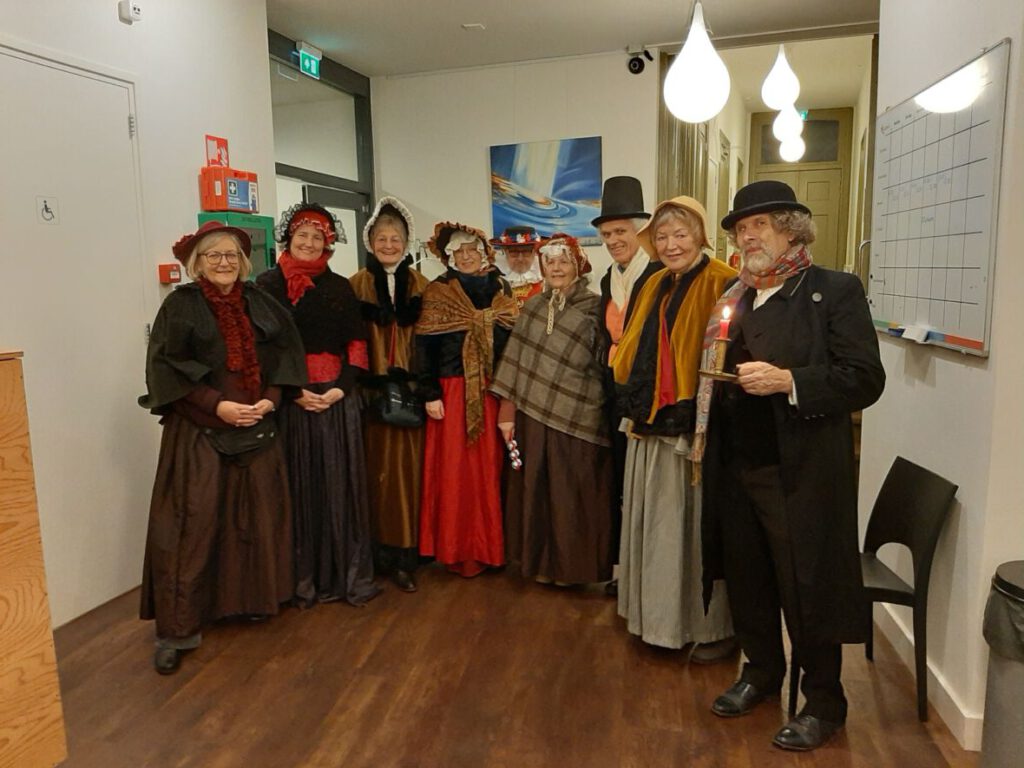 Ons adhoc koortje heeft de afgelopen weken nogal flink gerepeteerd voor verschillende gelegenheden. Op 4 november de Herdenkingsdienst, in Tjamsweer, van Hospice De Schutse, en vervolgens voor het festival Dickens in Daam, dat nu, 11-12-13 december speelt, en dan nog voor de Kerstavond van het dorp, 21 december. Alles onder bezielende leiding van Janet Gerbrandy, met aan de piano (Ab Goubitz, o nee, verkeerde tijd, ik bedoel) Louise Philipse. Wat we aan zangkwaliteit missen, maken we ruimschoots goed met ons enthousiasme. De professionals zijn trouwens best tevreden!