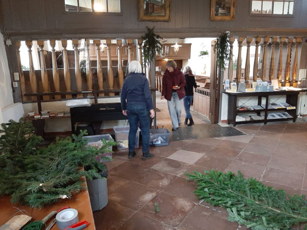 En tenslotte: eergisteren en gisteren de kerk in kerstsfeer gebracht. In de hoop op een goedbezochte en vooral saamhorige Kerstontmoeting van en voor het dorp, 21 december, vanaf 16.30 u. De kinderen zijn al liedjes aan het oefenen en de volwassenen dus ook.