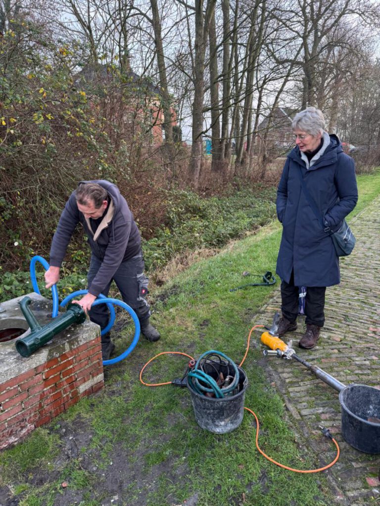 De pomp kan nu nog niet gebruikt worden (vorst) – blijft eerst leeg, tot volgend voorjaar. Maar dan kunnen we vooruit met de watervoorraad. Vakwerk! Met dank aan Zeeman en Lindeman!