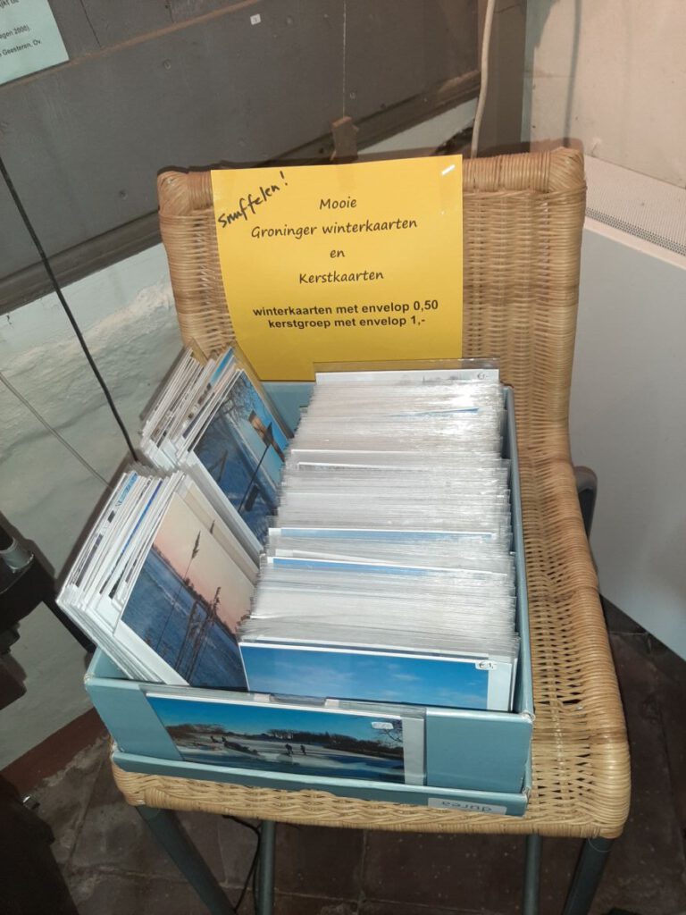 Ineens is het kwik onder nul gedaald en worden we getrakteerd op hagel en natte sneeuw. We hebben de Groninger winterkaarten voor de dag gehaald, die prima als decemberkaarten kunnen worden verstuurd. Even reclame maken: mooie dubbele blanco kaarten met envelop € 0,50, en de grotere kaarten van onze kerstgroep, ook met envelop, € 1,- Wat u zegt: dat ze het daarvoor kunnen maken! Kom lekker snuffelen. De kerk is de hele dag open.