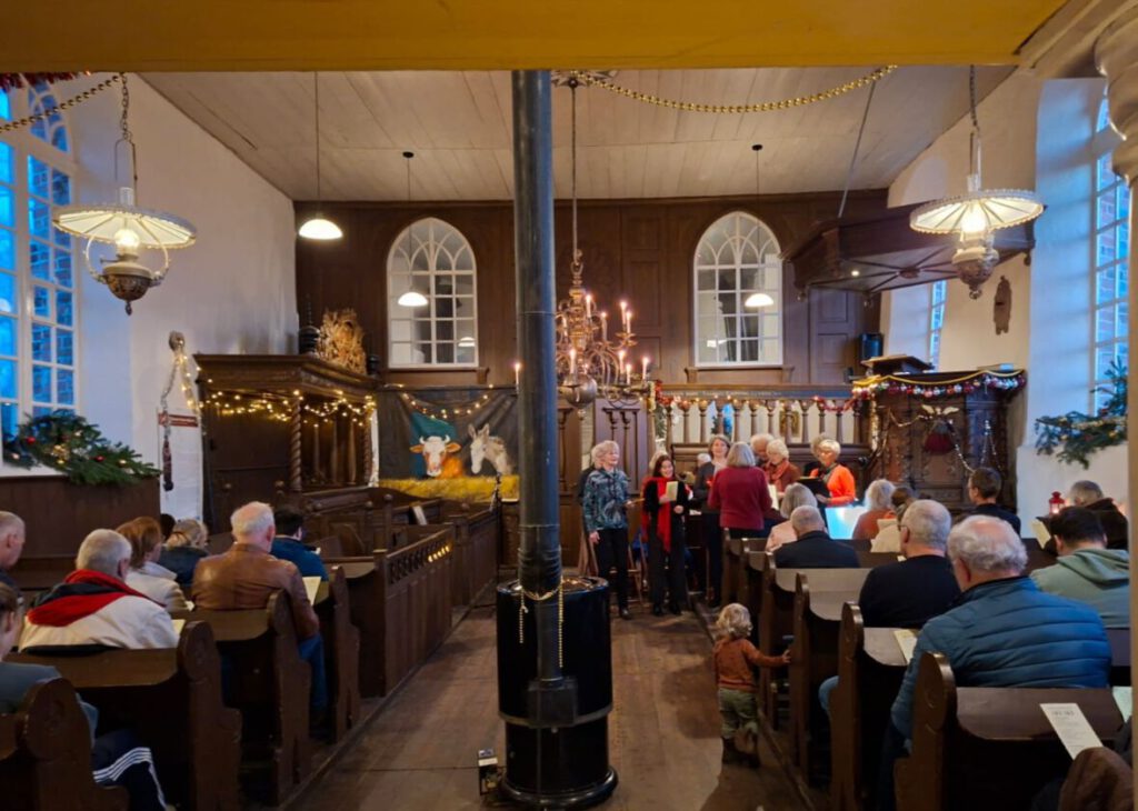 Op zondag 21 december hielden we als dorp weer onze kerstsamenkomst, dit jaar voor het eerst om 16.30 u, een mooie tijd, ook voor gezinnen met kinderen. Het werd een ontspannen en mooi samenzijn, met de bekende kerstliederen, een Engelse carol en een middeleeuws kerstlied: Sint Jozef ging al treuren. Er was een verhaal, en er waren gedichten en het kerstevangelie werd in het Gronings prachtig voorgelezen: Vandoag is Haailand veur joe geboren, Christus, de Heer, in stad van David. En dit is n aanwies veur joe: ie zellen n potje vinden dij in douken wikkeld is en in n krub ligt.”