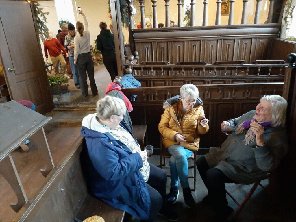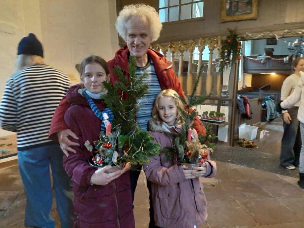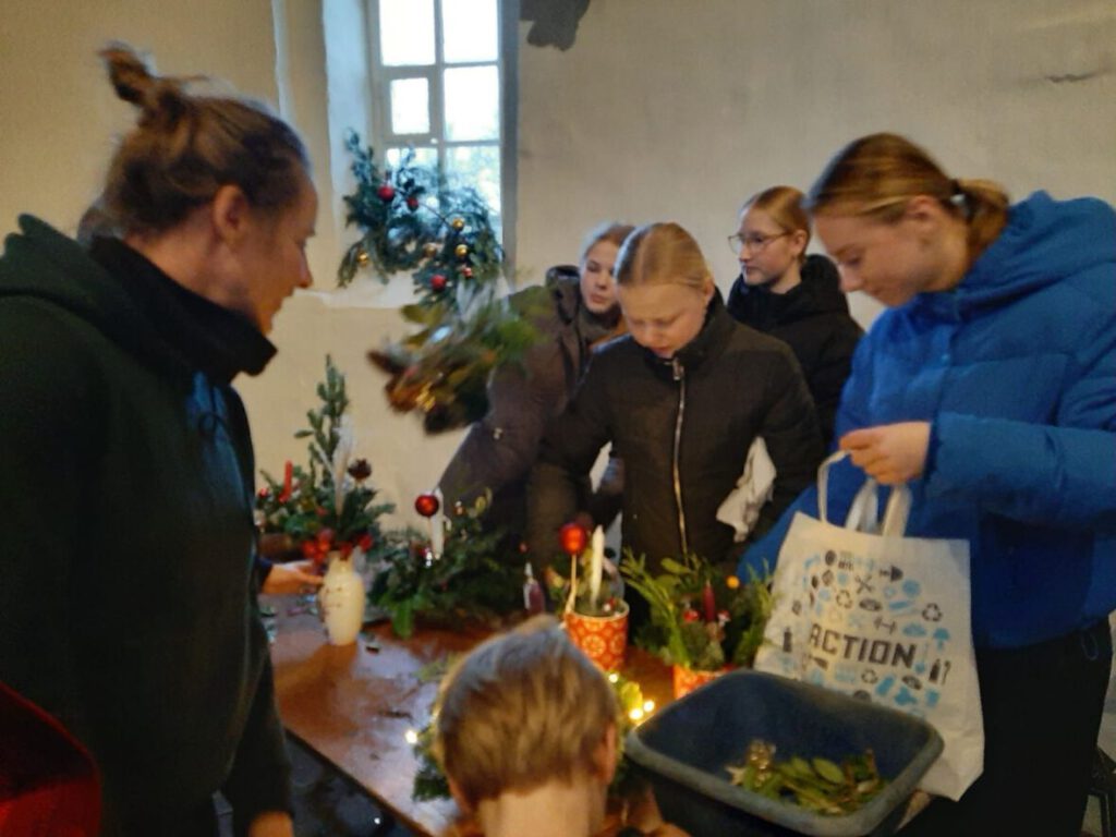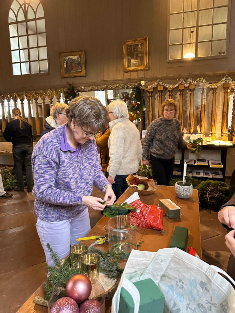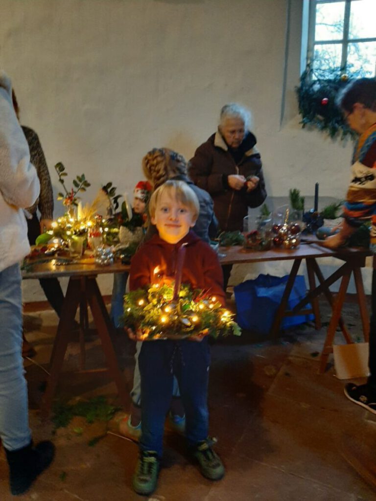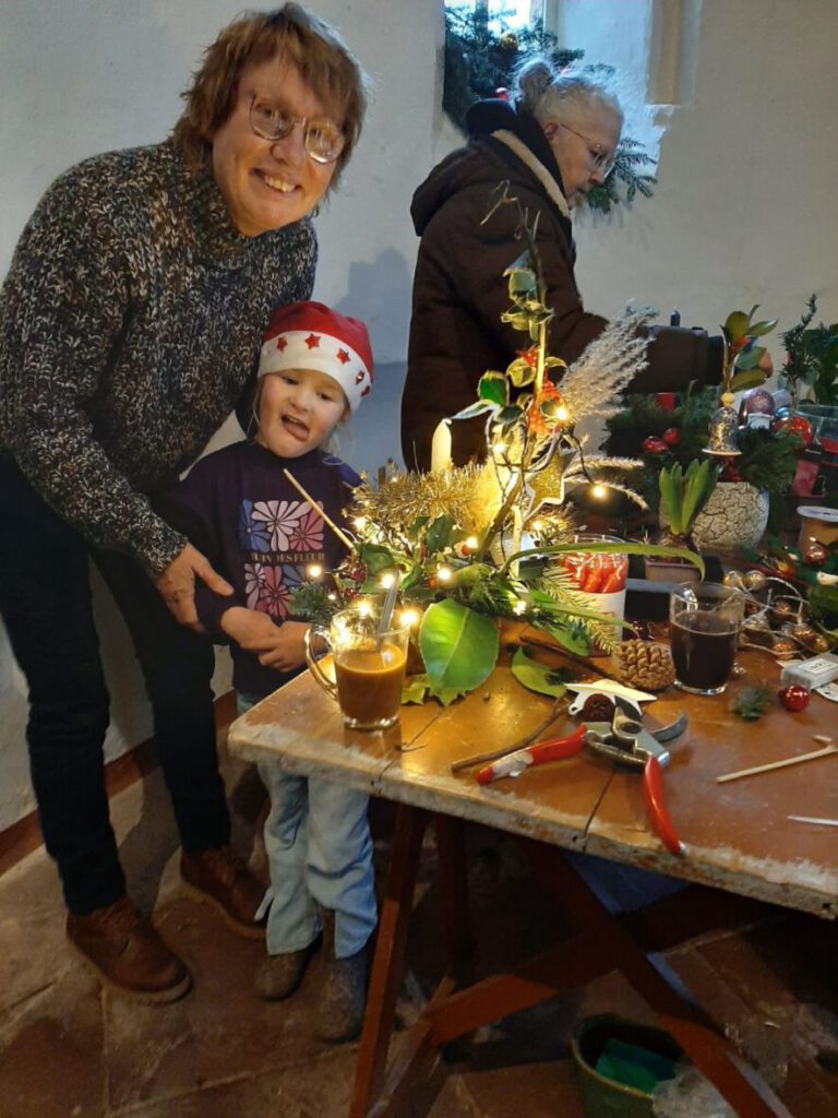 Zo’n 20 dorpsgenoten en logé’s, jong en ouder, kwamen vanmiddag in de kerk bij elkaar om kerststukjes te maken. Een hoop creativiteit en gezelligheid!