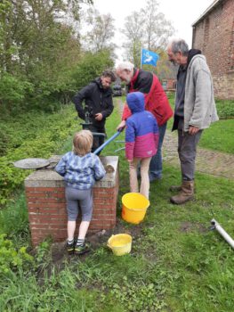 De zwengelpomp, die met het oog op de vorst nog niet in gebruik was genomen, is nu in werking gesteld. Het is een uitkomst: een enorm ondergronds reservoir aan schoon regenwater, afkomstig van het dak. De werkzaamheden op het kerkhof beginnen ook langzaam weer. Voorzichtig zijn er wat bollen opgekomen:…